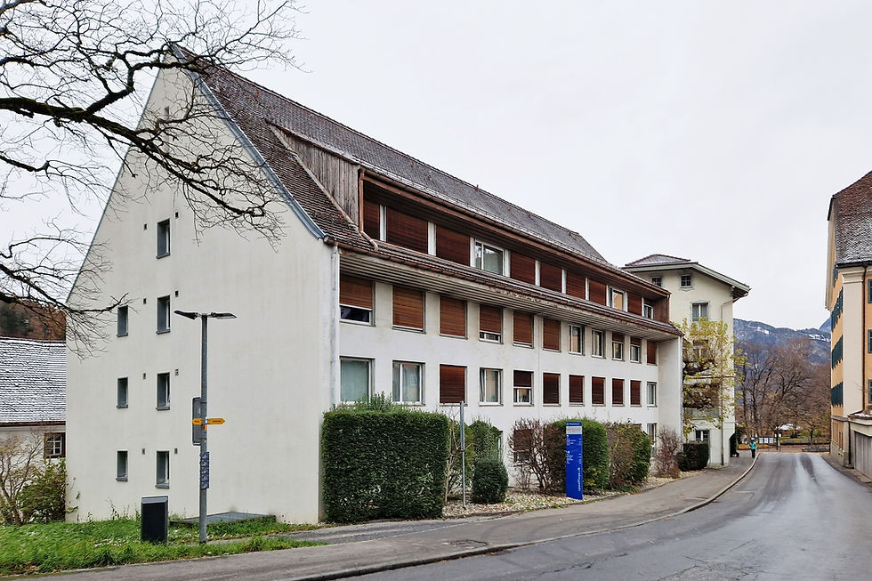 Das Personalhaus des Grand Resort Bad Ragaz liegt zwischen den historischen Nutzbauten und der alten Stadthalterei an der Pfäferser Strasse. Es bildet den Abschluss einer abgewinkelten Häuserzeile der Architekten-Gebrüder Simon.
